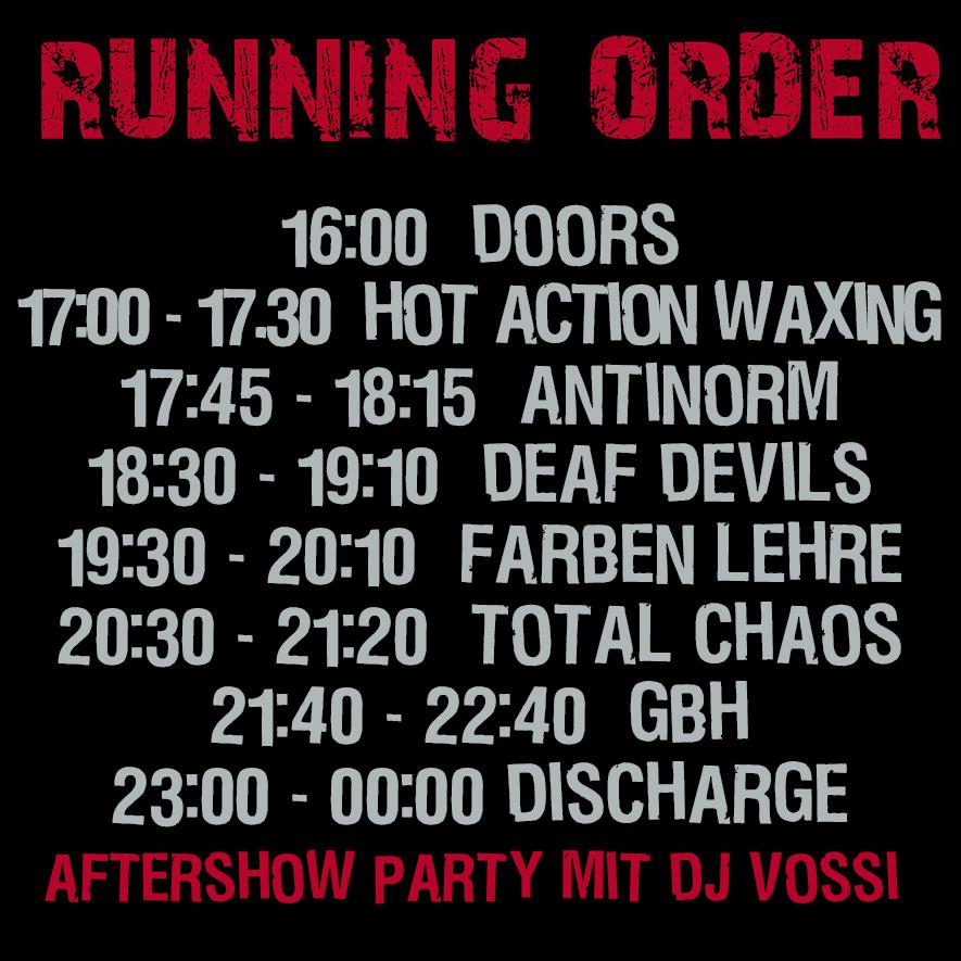 Aufgrund gesundheitlicher Probleme des Exploited-Sängers muss die Band ihren Auftritt am Samstag absagen. Als Ersatz konnten Agentur und Tourveranstalter TOTAL CHAOS ins Boot holen. Alle anderen Bands sind natürlich weiterhin dabei. Wir wünschen Wattie gute Genesung und freuen uns aufs Konzert!